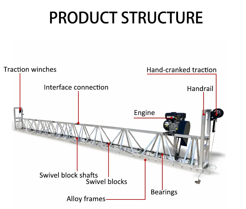 Máy có độ rung của sàn bê tông 18m là máy san lấp khung với tốc độ đồng đều, hiệu suất ổn định và chiều dài điều chỉnh.