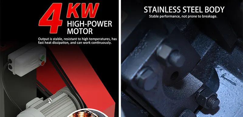 Máy cắt thanh thép 4kW 38mm II này là một thiết bị chuyên nghiệp công suất cao được thiết kế đặc biệt để cắt hiệu quả các thanh thép 38mm II. Nó được trang bị động cơ cấp công nghiệp 4kW, có thể dễ dàng cắt thép có ren, thép tròn và các vật liệu cứng khác.